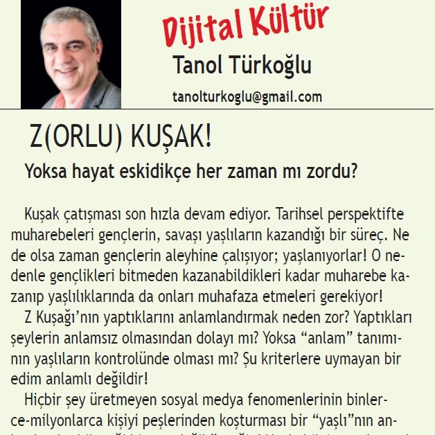 Z Kuşağı’nı, “üstünde durduğunuz bu zemin olmasa yok olup gidersiniz” diye eleştirmek ne kadar doğru? O zemini önceki üç kuşak elbirliği ile oluşturdu. Hem de öyle sağlam oluşturdu ki yıkılması çok zor! Sokakta ellerinde akıllı telefon (yakın gelecekte sanal gerçeklik gözlüğü) ile fiziksel dünyadan kopuk hareket edenler görenleri şaşırtmaya devam ediyor. En basit sorunda bile mukavemet gösteremediklerinde, kırılganlıkları şok ediyor. Ama öyle olmaları arzu edildiği için öyleler! Onlar kendilerini başka bir paradigmada gerçekleştirmek istiyor!